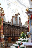 L'orgue de choeur: construit par le facteur Joseph Höss, en 1760, cet instrument est divisé en deux parties. La division de Grand-Orgue (Hauptwerk) est placée côté Epître, à droite, alors que les divisions du Positif et de la Pédale se trouvent à gauche, côté Evangile. La console est au centre du choeur (restauré par la manufacture Klais, en 1988, cet orgue est à traction mécanique sur deux claviers et pédalier pour 21 jeux).