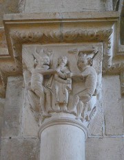 Tentation de St-Benoît par une femme. Cliché personnelAnge à l'olifant, annonçant la naissance de Jésus (tympan Sud, narthex). Cliché personnelLe grand tympan principal du narthex à Vézelay. Cliché personnel (sept. 2016)